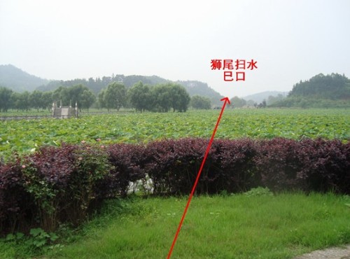 名堂前半月型大水池环抱阳宅